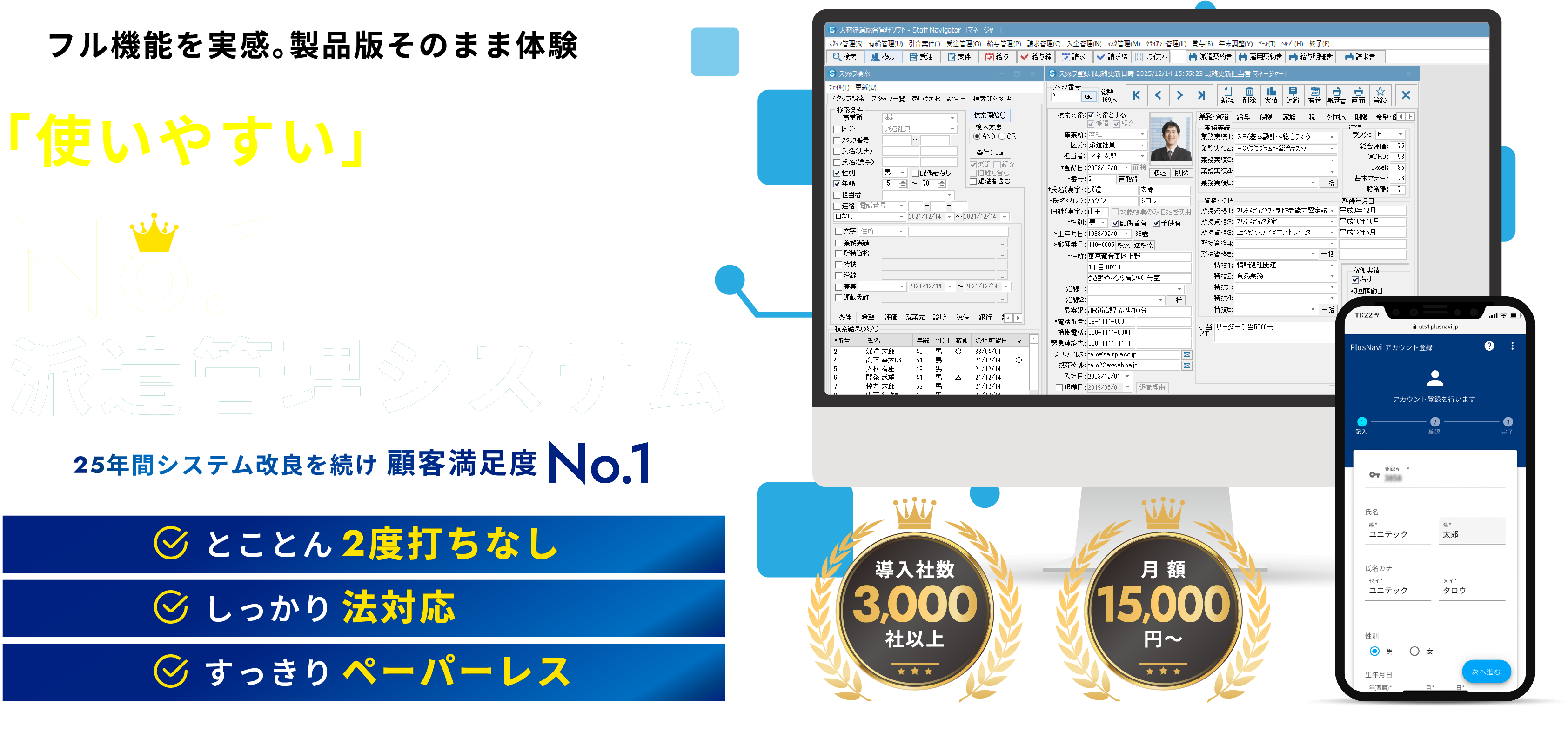 求職者がスマホで仮登録したプロフィール(氏名/性別/生年月日など)が、自動的に派遣元の人材派遣管理システム上に反映されるため、情報入力の手間を軽減できます。顔写真や免許証・保険証の提出に加え、資格証明書などや多様な書類のアップロードができます。